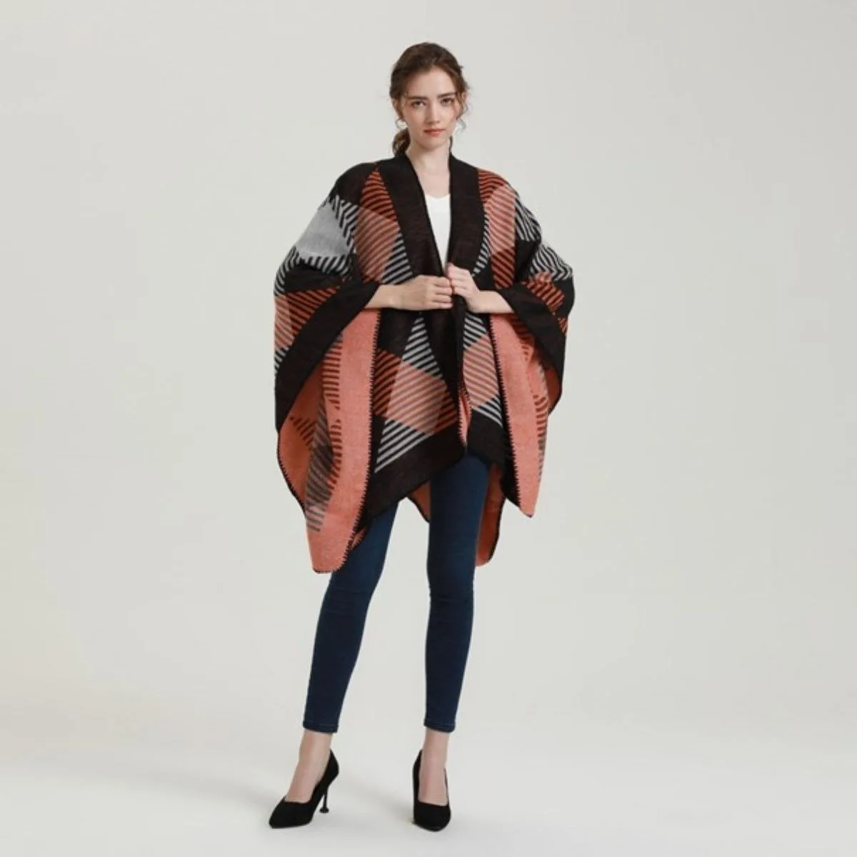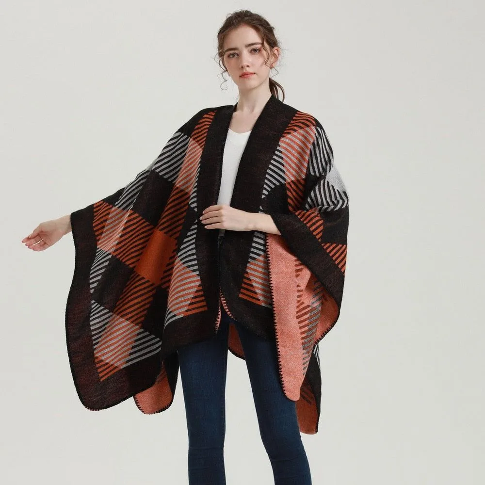 Un poncho à carreaux pour un style hivernal inégalé