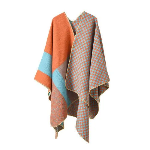 Imaginez-vous dans un Poncho Cachemire À Carreaux